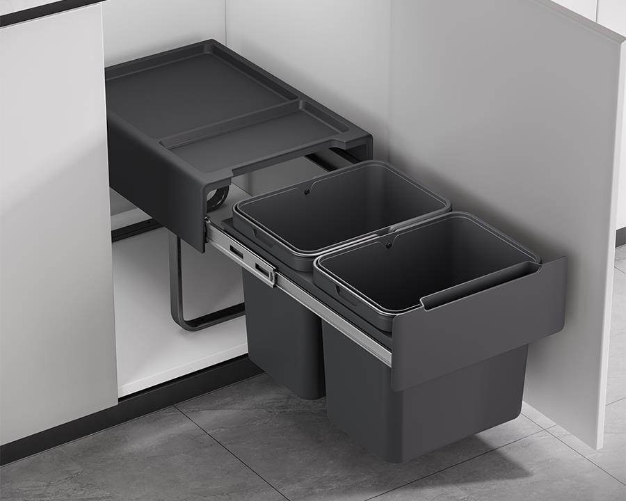 Introducing our latest addition to the Kia Ora lineup, the OPTIO range of base mounted kitchen bins: a brand-new range of bottom mount bins. These Kitchen bins are designed to fit 300mm, 400mm, and 450mm carcases, and they come in three height options: 320mm, 420mm, and 520mm. This range also has single, double and even triple waste separation options giving flexibility like never before!